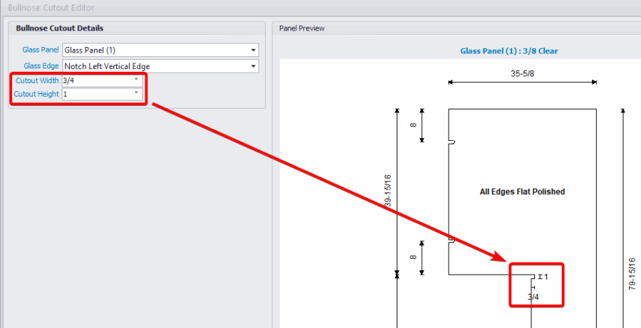 - A separate glass pricing option is also available for bullnose cutouts allowing complete control over costs and quotes: