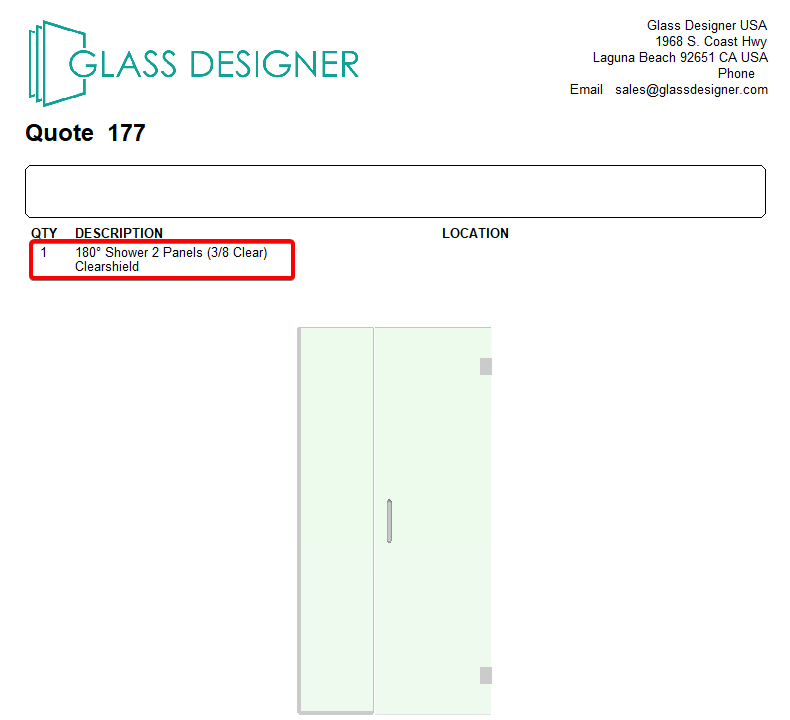 - Glass Treatment has been added to quote line descriptions for showers and glass panels: