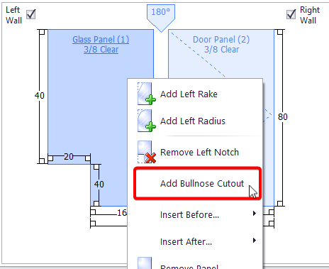 - To add a bullnose cutout to a notched panel, right click the panel and choose “Add Bullnose Cutout”: